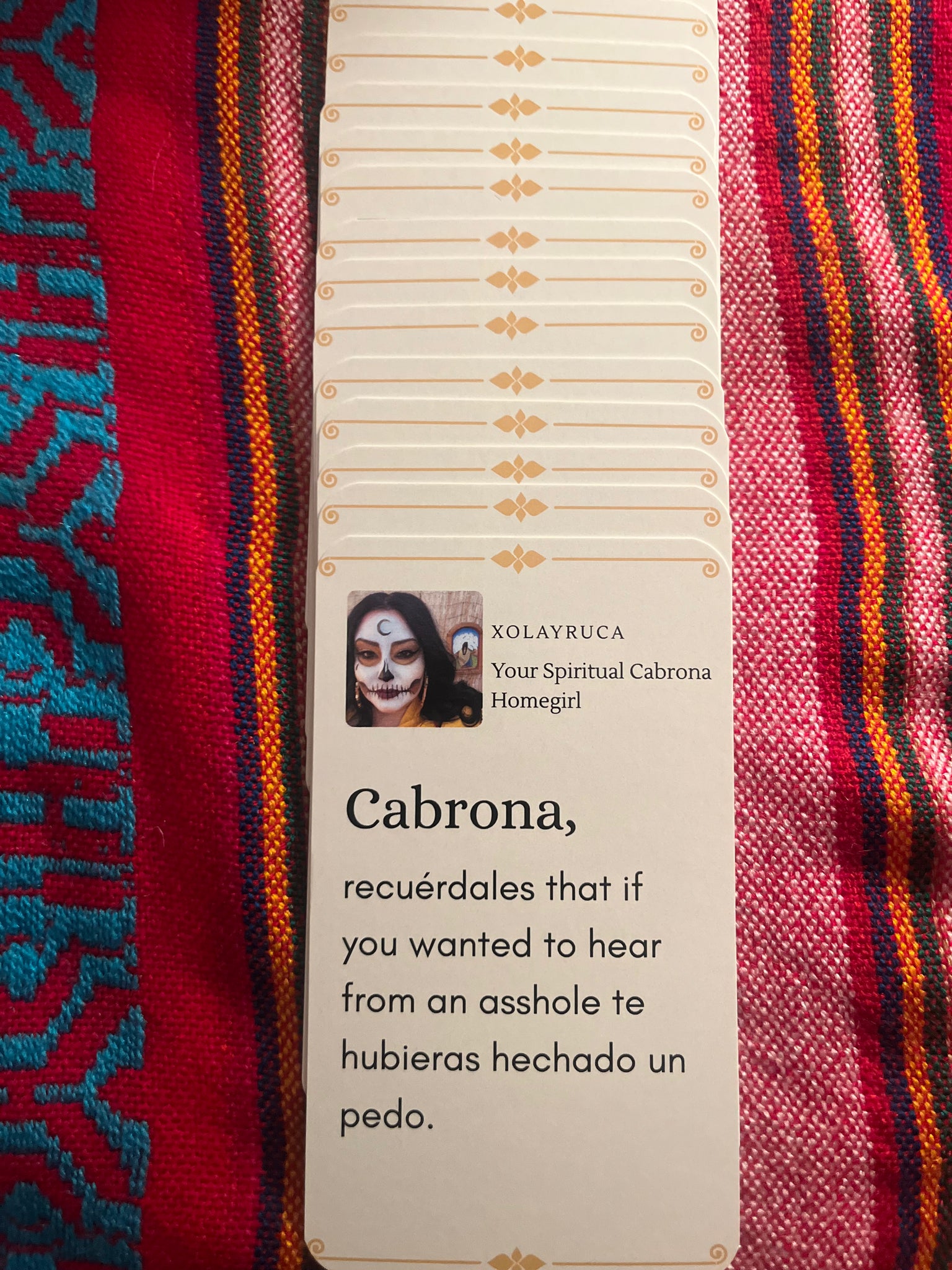 Xolayruca, your Spiritual Cabrona homegirl, is now offering readings using the Cabrona Consejos Oracle Deck and intuitive guidance. We’ll start the session with a guided meditation to help you connect with your Well Ancestors, guides and Angels. Then we’ll get into the guidance from the Cabrona Consejos Oracle Deck. Other tarot and Oracle decks may be used. The session is guided by intuition and whatever is meant for your highest good. This will be a 20 to 30 minute session via Zoom.